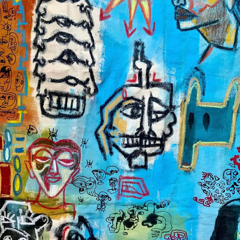 This painting marks a new stage in my work, where I began experimenting more freely, painting on raw canvas and incorporating more spontaneous elements.
